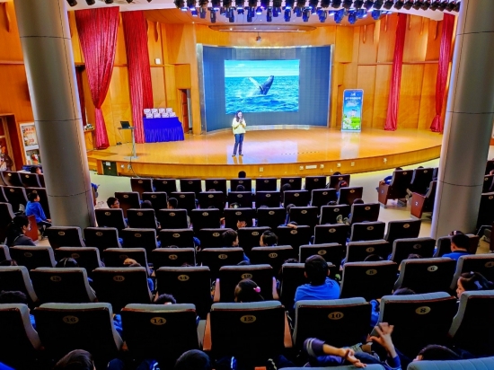 《岡特生態(tài)童書》的聯(lián)合譯者朱溪老師首先從云南西雙版納的大象旅行講起。大象為什么離開家?大象旅行和我們的生活有什么關(guān)系?一個又一個問題引發(fā)了同學(xué)們的熱烈討論和深入思考。接著,朱溪老師又從大熊貓保護、菌菇網(wǎng)講到鯨的氣泡捕食,從如何用竹子建一座房子講到如何將可再生能源應(yīng)用到日常生活。朱溪老師通過生動有趣的故事,告訴同學(xué)們自然界中不同生物間的奇妙關(guān)系,呼吁同學(xué)們共同保護好生物多樣性,讓多樣的生物基因能長久地保留下去,讓自然界更加豐富多彩。