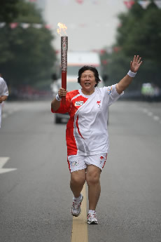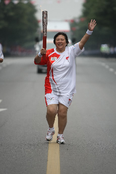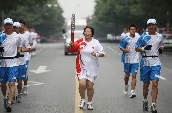 2008年7月4日上午8時,環(huán)境保護部宣教中心主任焦志延在西安參加2008奧運火炬?zhèn)鬟f。