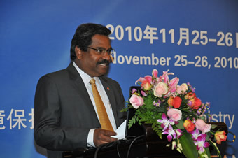 環(huán)境保護(hù)部李干杰副部長(zhǎng)在致開幕詞中簡(jiǎn)要介紹了中國(guó)環(huán)境政策進(jìn)展情況,并針對(duì)區(qū)域未來(lái)環(huán)境合作提出了四項(xiàng)實(shí)質(zhì)性建議:盡快制定《中國(guó)-東盟環(huán)境保護(hù)合作行動(dòng)計(jì)劃》;加強(qiáng)綠色產(chǎn)業(yè)政策的交流與合作;加強(qiáng)環(huán)境技術(shù)標(biāo)準(zhǔn)體系的交流與合作,促進(jìn)環(huán)境產(chǎn)品與低碳產(chǎn)品互認(rèn);啟動(dòng)“中國(guó)-東盟綠色使者計(jì)劃”,促進(jìn)區(qū)域環(huán)保能力建設(shè)合作。