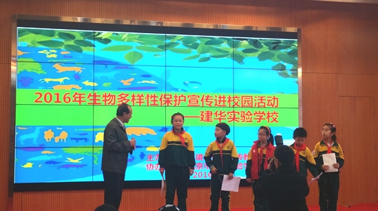 2016年3月15日,由環(huán)境保護部宣傳教育中心主辦,北京建華實驗學(xué)校協(xié)辦的“2016年生物多樣性保護宣傳進校園”活動在北京市建華實驗學(xué)校舉辦。