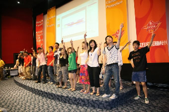 | 參賽隊與評委合影 | 可口可樂(中國)外事部總監(jiān)與我刊鄒晶副總編合舉火炬 | ||