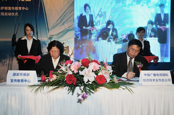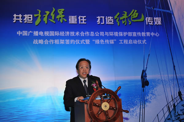 2010年5月19日,環(huán)境保護(hù)部宣傳教育中心和中國廣播電視國際經(jīng)濟(jì)技術(shù)合作總公司合作在京舉辦了綠色傳媒戰(zhàn)略合作框架意向簽約儀式。雙方共同簽署了《綠色傳媒戰(zhàn)略合作框架意向》,標(biāo)志著雙方合作的綠色傳媒工程正式啟動(dòng)。環(huán)境保護(hù)部環(huán)境發(fā)展中心主任唐丁丁、環(huán)境保護(hù)部宣傳教育中心主任焦志延、中國廣播電視國際經(jīng)濟(jì)技術(shù)合作總公司總經(jīng)理李金榮等出席了簽約儀式并致辭。項(xiàng)目啟動(dòng)后,合作雙方將共同打造具備國際先進(jìn)水平的綠色傳媒示范,引領(lǐng)全社會(huì)向可持續(xù)發(fā)展方式轉(zhuǎn)變。