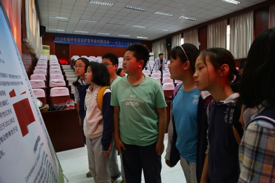 我國是世界上生物多樣性最豐富的國家之一,物種資源種類非常多。但由于人口的快速增長、對生物物種資源的過度開發(fā)、外來物種的引進、環(huán)境污染、氣候變化等原因,我國生物物種資源喪失和流失情況嚴(yán)重。保護生物物種資源顯得迫在眉睫。北京十一中學(xué)的田藝偉老師在活動中總結(jié)道,“生物物種保護的問題其實很重要,生活在地球上的我們,作為地球的一份子,和周圍生物共存,保護好身邊的生物,其實就是保護我們自己。二十一世紀(jì)是生物學(xué)的世紀(jì),也希望同學(xué)們保持好奇心,對生物充滿興趣,生物界的未來是多姿多彩的。”由來自北京十一中學(xué)的師生近200人參加了活動,現(xiàn)場氣氛熱烈。 此次活動是“2016年物種資源保護宣傳進校園活動”的第一站,“保護身邊的物種資源,其實就是保護我們自己。”