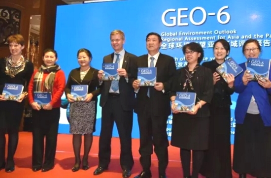 2016年12月9日,第六次《全球環(huán)境展望亞太區(qū)域評估報告》中文版發(fā)布會在北京舉行,發(fā)布會由聯(lián)合國環(huán)境署和中國億利公益基金會主辦,由中國環(huán)境保護(hù)部支持。聯(lián)合國副秘書長兼環(huán)境署執(zhí)行主任埃里克•索爾海姆,環(huán)保部國際合作司副司長宋小智等出席了本次活動并致辭;區(qū)域評估聯(lián)合主席周國梅博士與環(huán)境署首席科學(xué)家杰奎琳•麥克格雷德教授分別介紹了報告主要結(jié)論以及區(qū)域與全球進(jìn)程;參與撰寫這本評估報告的作者與專家,來自政府、研究機(jī)構(gòu)、高校、青少年代表、非政府組織和媒體等100多人參加了此次發(fā)布會。